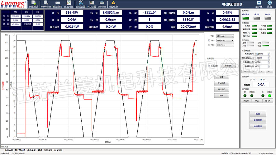 執(zhí)行器測試臺根據(jù)動力源的類型可以分為:電動執(zhí)行器測試臺、氣動執(zhí)行器測試臺、液動執(zhí)行器測試臺、撥叉式氣動執(zhí)行器測試臺。 執(zhí)行器測試臺根據(jù)運動方式的類型可以分為:角行程、多回轉(zhuǎn)、直行程執(zhí)行器測試臺。本測測試系統(tǒng)由加載裝置、轉(zhuǎn)矩轉(zhuǎn)速傳感器、測試臺架、執(zhí)行器安裝夾具、檢測柜等組成,它可以任意改變被測執(zhí)行器的負載,直接測量出執(zhí)行器負載耐久狀態(tài)下的輸出轉(zhuǎn)矩、轉(zhuǎn)速、功率、角度、壓力等參數(shù)。電動執(zhí)行器測試臺是用于全面檢驗和驗證電動執(zhí)行器(也稱為電動閥門執(zhí)行器)各項性能的專用設(shè)備。電動執(zhí)行器是閥門、風門等設(shè)備的驅(qū)動裝置,其可靠性直接關(guān)系到整個工業(yè)流程的安全與穩(wěn)定,因此其測試至關(guān)重要。